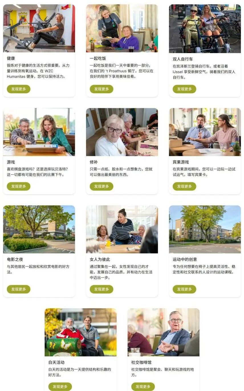 WZC Humanitas会日常举办咖啡聚会、散步、手工游戏等活动,为年轻人和老人提供相处交流的机会,活跃机构内的氛围。