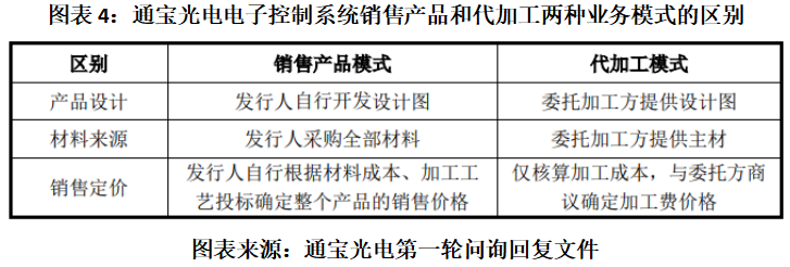 在第一轮问询回复文件中,通宝光电表示,报告期内其EPS控制器分为销售产品和代加工两种模式,且并行存在。其中,在销售产品模式下,产品是由通宝光电自行开发设计的。而保荐机构的工作底稿中,柳州赛克称该产品由“柳州赛克设计”。