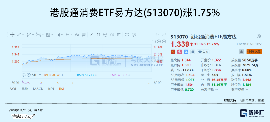其中,港股通消费ETF易方达(513070)涨1.75%。
