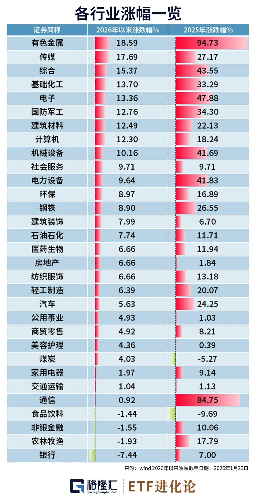 截至1月23日,有色金属板块年内涨幅再度位居第一。