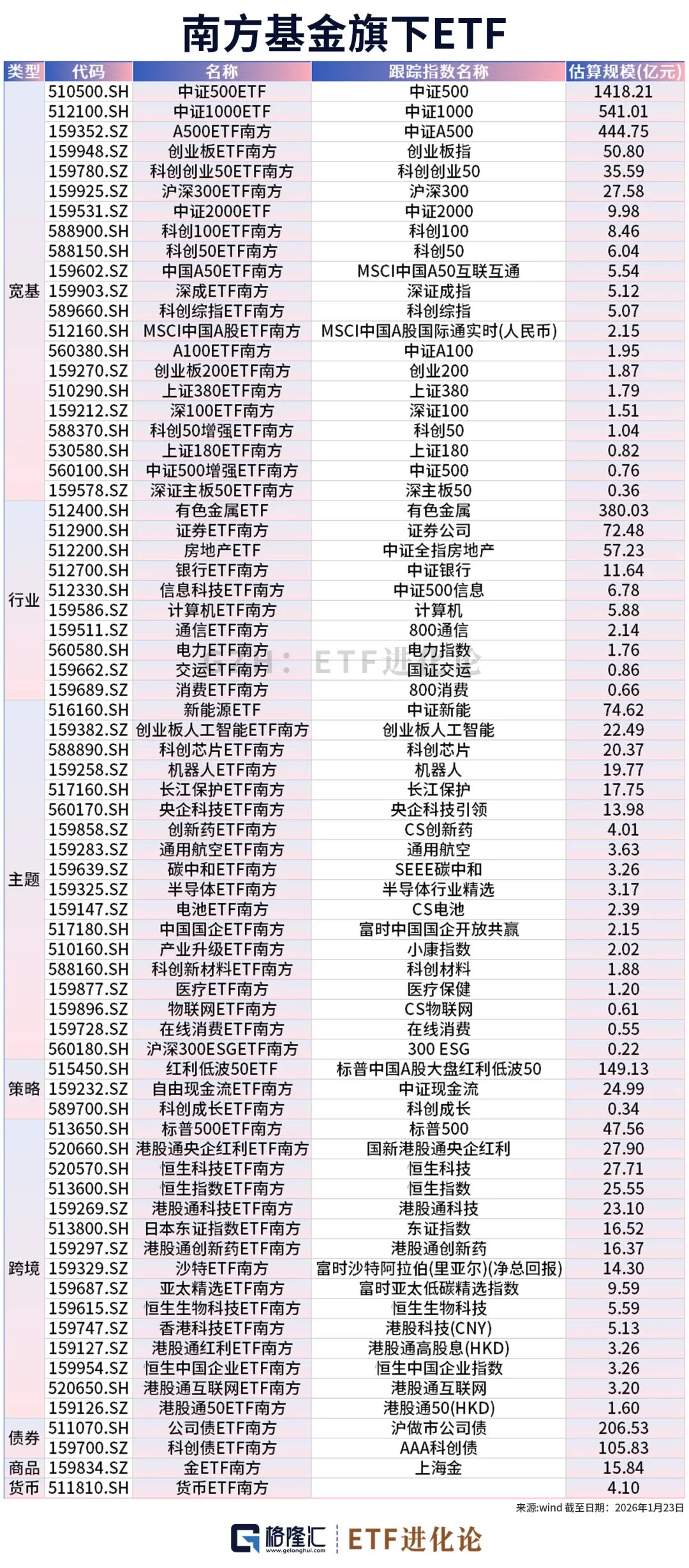 03 指数工具背后的“护城河”: 南方基金的精度与体系 当ETF市场进入高度同质化阶段,真正拉开差距的,往往不再是“有没有产品”,而是产品背后的运作能力与体系化积累。 在指数投资中,跟踪误差是衡量管理人专业能力的核心指标之一。 数据显示,南方基金旗下A股指数基金近三年规模加权跟踪误差仅为0.36%,显著低于行业平均水平。这种极致精度的维持,在南方基金管理规模超4000亿元的体量下尤为难得,彰显了其卓越的运营管理能力。 这些数据并非偶然,而是从“产品”到“系统”的长期投入。 作为国内最早布局ETF的管理人之一,南方基金已构建起覆盖宽基、行业主题、跨境、商品、因子等多维度的被动产品体系,并在多项领域推出“首批”“首只”产品。 更重要的是,其在指数运作层面,长期坚持以最小化跟踪误差为核心目标: 严格按照指数权重构建组合,不进行主观择时与个股判断; 通过量化模型与算法交易系统,动态匹配市场流动性; 针对指数调整、大额申赎等关键场景,制定专项风控与执行策略; 构建覆盖投前、投中、投后的智能化ETF投资管理系统。 这些“看不见”的流程与系统,构成了指数工具长期稳定运行的基础。 在市场波动加剧、情绪放大的阶段,ETF外观看似相似,但内在精度与稳定性的差异,往往会被放大。 04 时代的变迁,时间成为最重要的变量 回看历史,每一轮大宗商品超级周期,都源于相似的底层逻辑:供给刚性+需求结构性扩张+对资源价值的重新认知。 2003—2007年的那轮周期,是最生动的一次演绎。2025年以来的这轮有色金属行情,不同之处在于,供给端来源于环保约束与更复杂的地缘环境所限制,需求则来自新能源、AI算力、储能与高端制造。 站在2026年的起点,有色金属的叙事已经不再只是“涨或不涨”,而是关于产业安全、能源转型与长期竞争力等全球命题的时代映射。 在信息高度密集、情绪快速放大的市场环境中,规则清晰、结构透明的指数工具本身也是观察和深度嵌入时代变化的脉搏。 时间,终将给出答案。 风险提示:观点仅供参考,不构成投资建议,市场有风险,投资需谨慎。指数基金存在跟踪误差。 上述内容仅反映当前市场情况,今后可能发生改变,不代表任何投资意见或建议。指数过往业绩不代表其未来表现,亦不构成基金投资收益的保证或任何投资建议。指数运作时间较短,不能反映市场发展的所有阶段。指数基金存在跟踪误差,基金过往业绩不代表未来表现。购买任何基金产品前请阅读《基金合同》《招募说明书》等法律文件,请根据自身风险承受能力、投资目标等选择适合自己的产品。市场有风险,投资需谨慎。