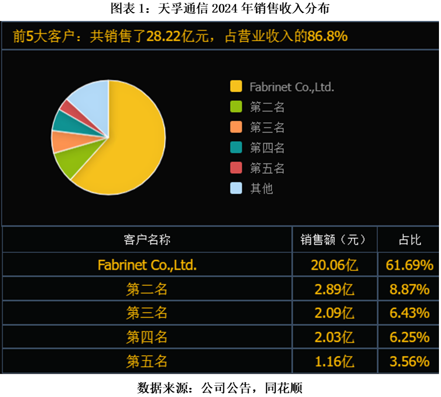 首先,是极高的客户集中度风险。该公司长期高度依赖单一大客户Fabrinet,2024年,Fabrinet销售额占比高达61.69%,这使得公司业绩与其命运深度捆绑。