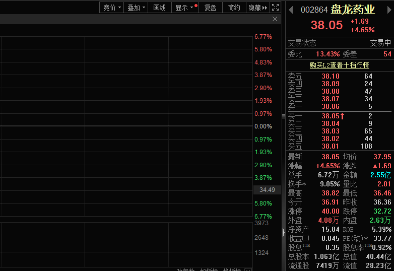 2月13日,盘龙药业(002864)股价大涨。截至发稿,股价涨幅超5%。