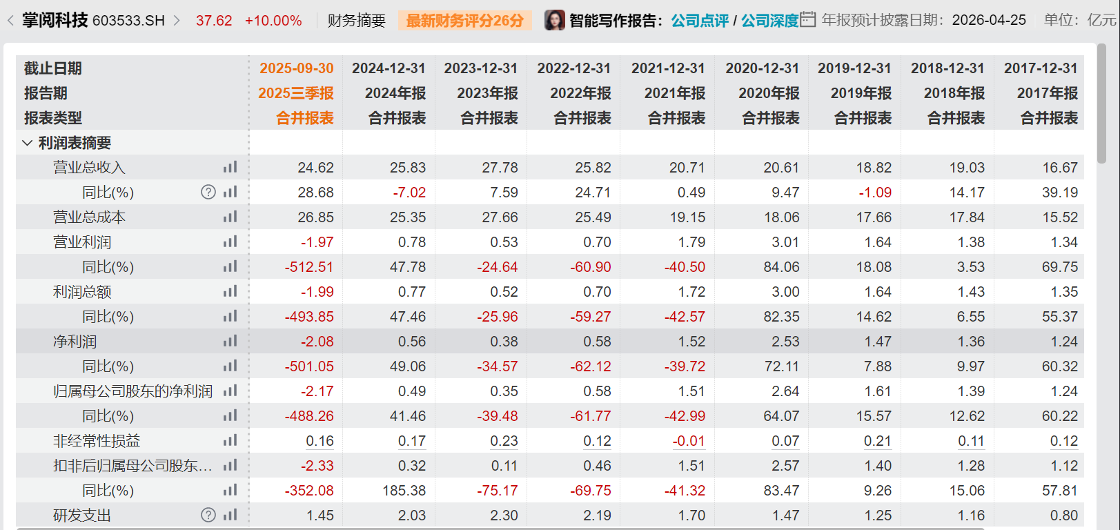 “五连板”暴涨61%!掌阅科技预亏近2亿、AI短剧收入不足1%,仍遭资金爆炒