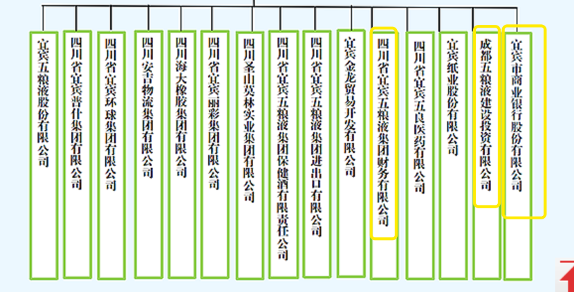 从五粮液集团的组织架构来看,该集团15家核心子公司中有多家金融企业,该公司旗下有布局宜宾银行(02596.HK)、成都五粮液建设投资有限公司、宜宾五粮液集团财务有限公司。