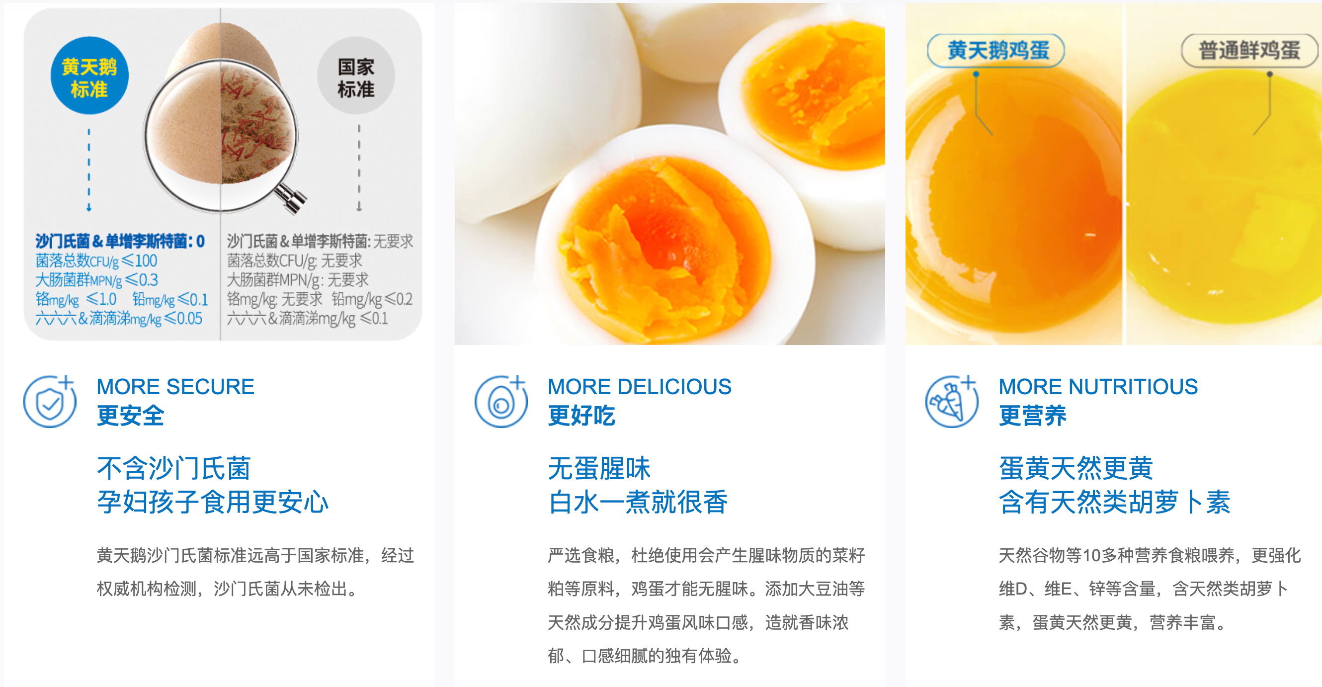 在黄天鹅官网,“蛋黄天然更黄、含有天然类胡萝卜素”被作为其产品营养价值的说明呈现。