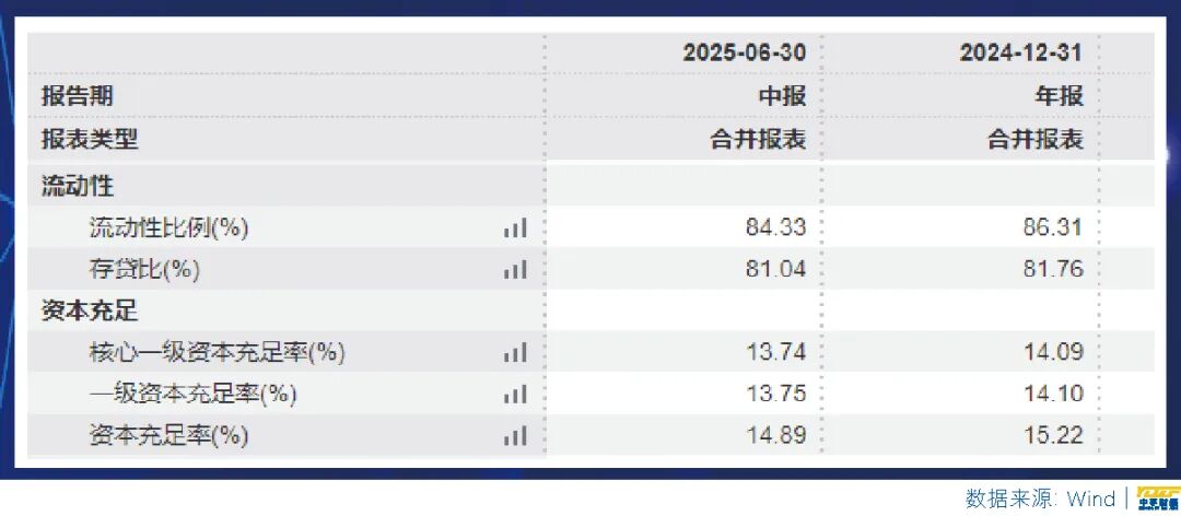此外,2025年上半年,江阴银行在资本充足率、一级资本充足率及核心一级资本充足率均出现一定下滑,未来或也面临一定的资本补充压力。