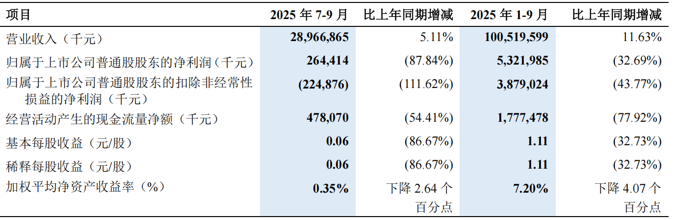 根据中兴通讯的三季报,今年1-9月,中兴通讯实现营收1005.2亿元,同比增长11.6%,归母净利润53.2亿元,同比下滑了32.69%;单看第三季度,中兴通讯营收289.7亿元,同比增长5.11%,归母净利润2.6亿元,同比下滑了87.84%。