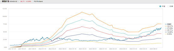 图: 藏格矿业近5年PE-band,24年以来开启拔估值