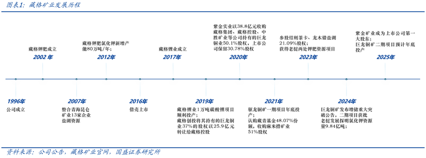 高速发展期(2022年-2024年):2022年,巨龙铜矿投产;2023年,参股结则茶卡、龙木错盐湖(合计权益21.09%),卡位西藏优质盐湖资源;同年,出海布局老挝钾盐矿。